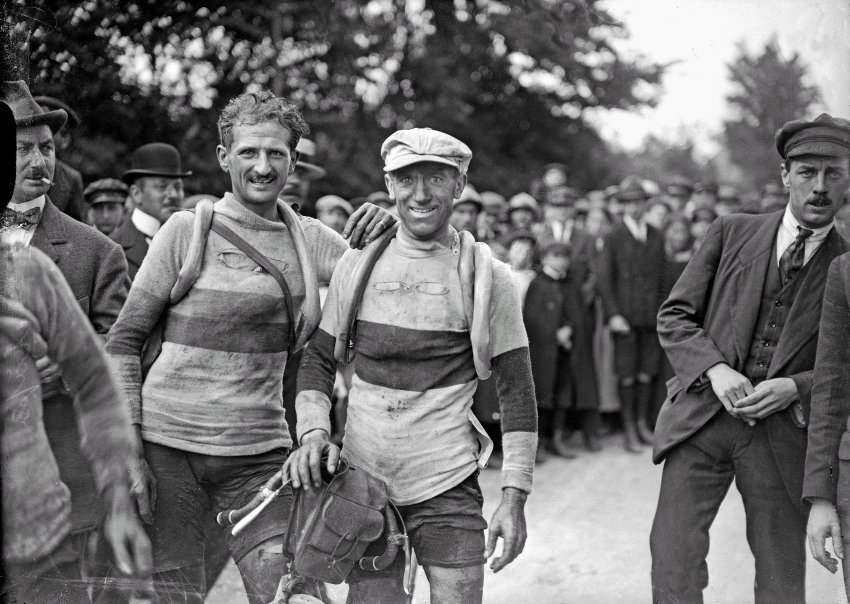 En los años 20, Philippe Thys (derecha) estableció un nuevo récord de tres victorias. El corredor de la izquierda es el piloto francés René Chassot. Desgrange el fundador del Tour, dijo: “Si la guerra no le hubiese robado sus mejores años, Philippe Thys seguramente habría ganado más de tres tours”.